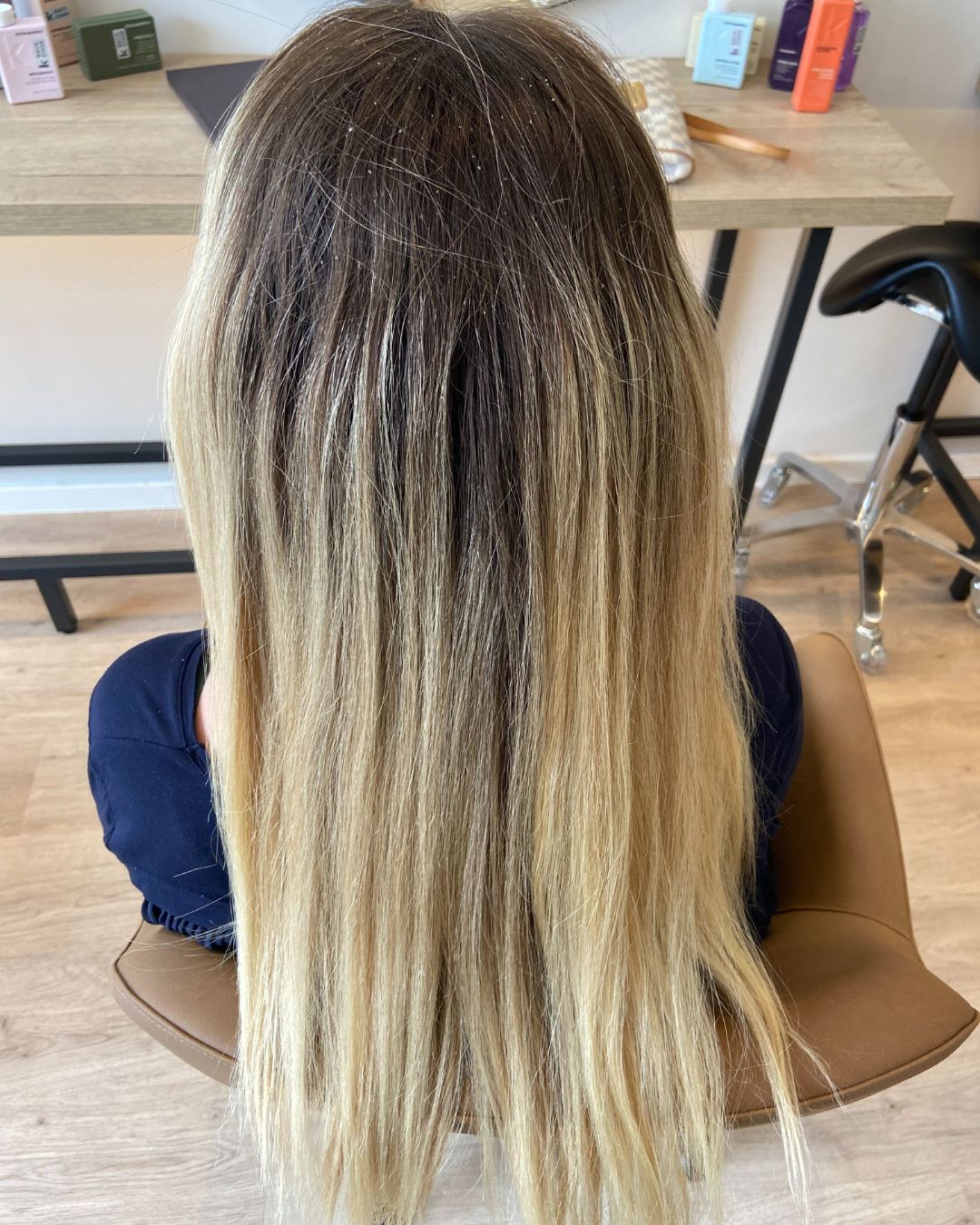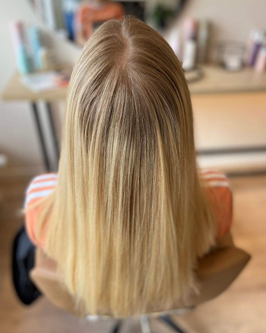 Alternativ kann man High-Lift-Farben ohne echtes Bleach verwenden. Voraussetzung ist, wenn Haar hell genug ist. Solltest du dennoch blondieren, ist es wichtig, schonend zu arbeiten. Durch längere Einwirkzeiten und geringer H2O2. Ein erfahrener Friseur benutzt z. B. Olaplex oder K18 und eine feuchtigkeitsspendende Pflege danach.